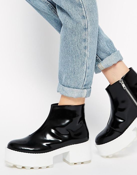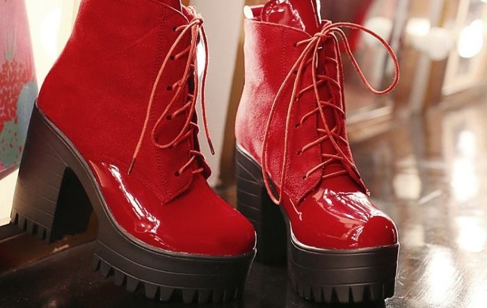 Самыми актуальными сейчас являются модели лаковых ботинок на тракторной подошве. Именно лаковая кожа, по мнению дизайнеров обуви и трендсеттеров, выглядит наиболее выразительно и интересно. При этом верх таких ботинок может иметь самый разнообразный дизайн. Это могут быть и женственные ботильоны на шнуровке, и имитация одной из популярных сейчас мужских моделей обуви: лоферов, оксфордов, дерби, только снабженная массивной платформой и каблуком.