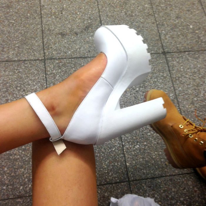 С юбкой, если бедра и ноги являются полными, носить любую платформу не советуют, так как это сделает ногу более тяжелой, исчезнет изящество щиколотки, которое успешно подчеркивается другой, более легкой обувью. Здесь многое зависит от человеческого сложения.