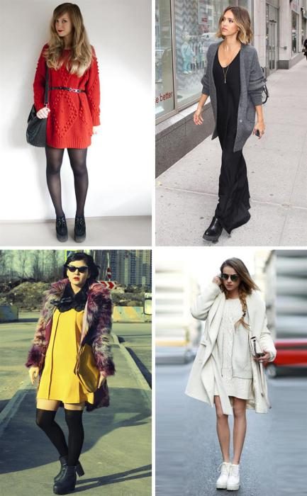 Лучше всего выбирать длину мини, чтобы визуально вытянуть весь образ. Дополнить такой наряд могут однотонные гольфы чуть выше колена или вязаные гетры средней длины. Но любительницы миди и макси также могут смело создавать луки на основе подобной обуви. Если говорить о платьях, то наиболее выигрышно будут смотреться ансамбли с прямыми платьями-рубашками. Но классические модели по фигуре, а также разнообразные свободные фасоны в сочетании с зимними массивными ботинками будут выглядеть не менее интересно. Все зависит от предназначения будущего лука.