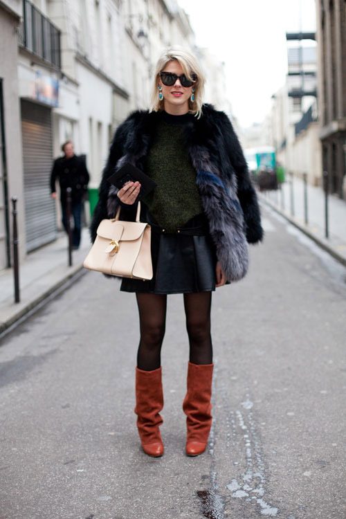 Кожаные сапоги хорошо сочетаются с вещами в любом стиле. Их можно носить как с платьями или брюками, так и с джинсами или шортами. В зависимости от фасона обуви, ими можно дополнять лук с пуховиками, пальто или шубками. Аксессуары также могут быть самыми разнообразными: вязаными, текстильными, махровыми или даже кружевными.