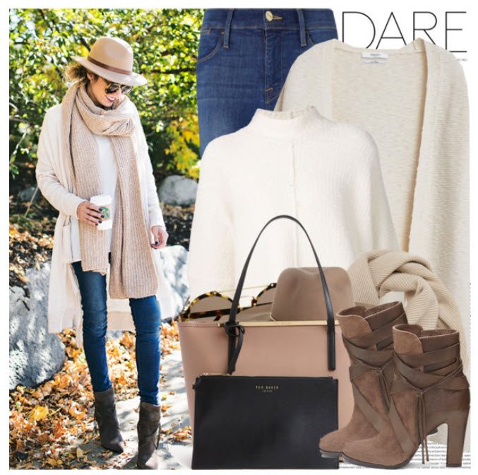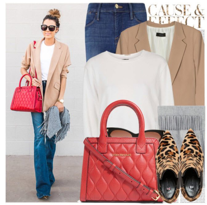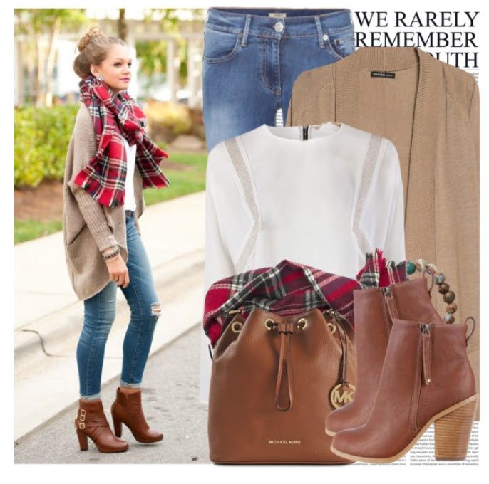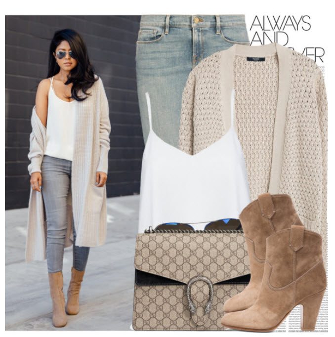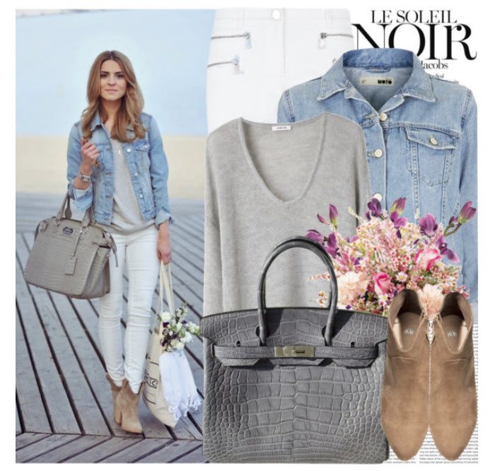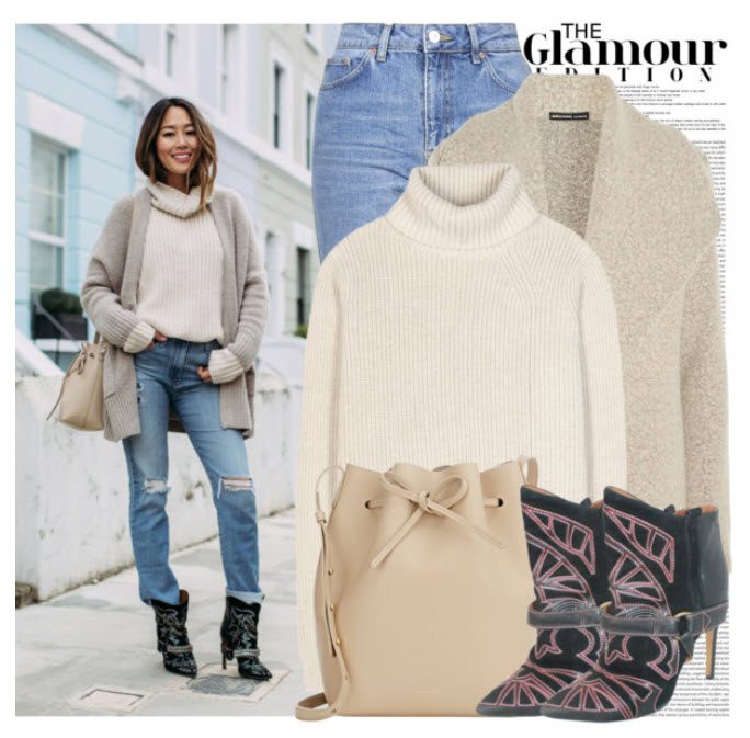 Для более свободного ансамбля выберите узорчатый, жаккардовый трикотажный жакет или пуловер и джинсы. Из дополнений: объемная сумка из натуральной кожи или льна.