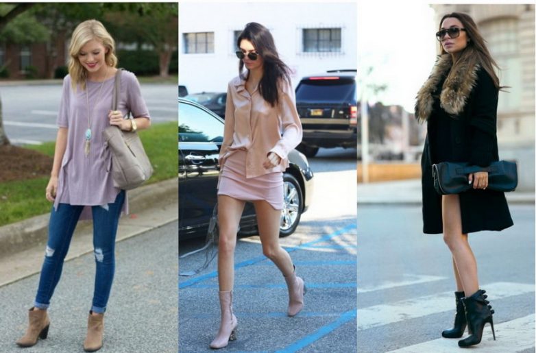 Все знают, что одна даже одна деталь гардероба может испортить весь образ. Подбирая одежду, помните, ботильоны идеально сочетаются с брюками, джинсами, юбками и платьями, однако главное условия сочетания именно с юбками и платьями – ваши красивые стройные ножки. Если вы предпочитаете коротенькие юбочки или платья, обратите внимание на ботильоны на каблуке выше 5 см.