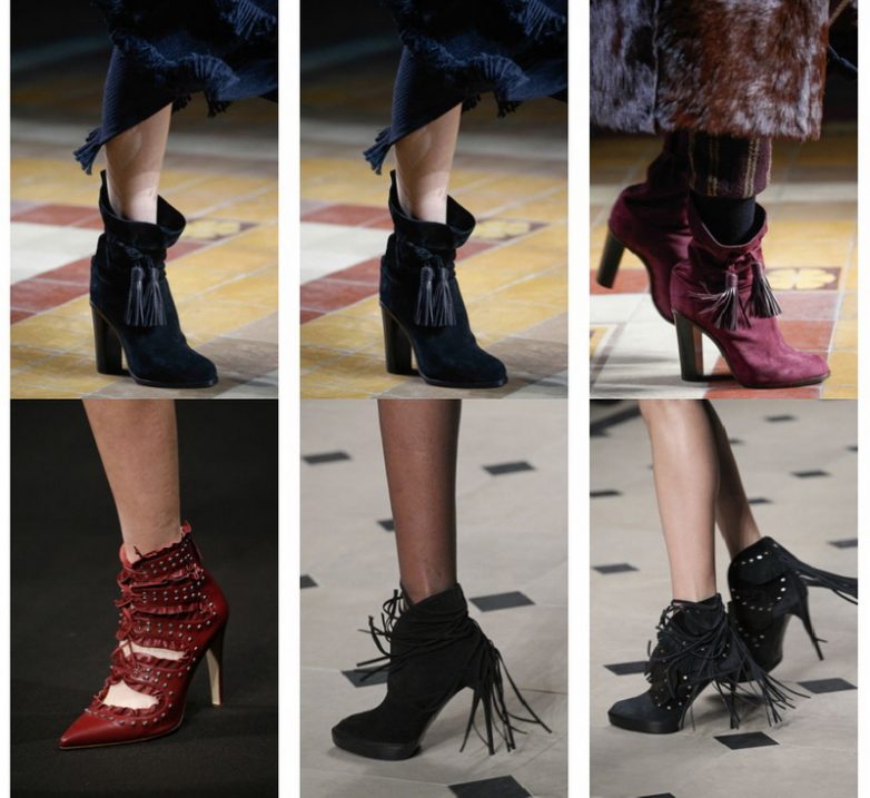 Украшенная мехом обувь выглядит странно не в сезон. Джинсы с прорезями и укороченной длиной выглядят странно с заведомо теплыми ботинками.